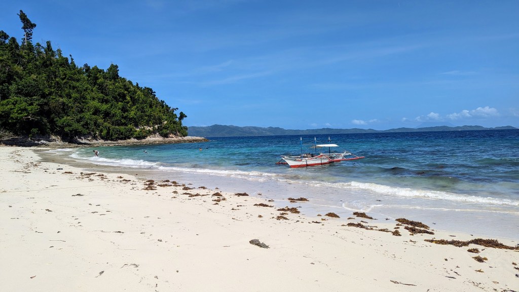 Keep walking further west along the water, and you will come to the White beach. Unless you go on a boat tour, this is, probably, the best place for both swimming and sunbathing near Port Barton.