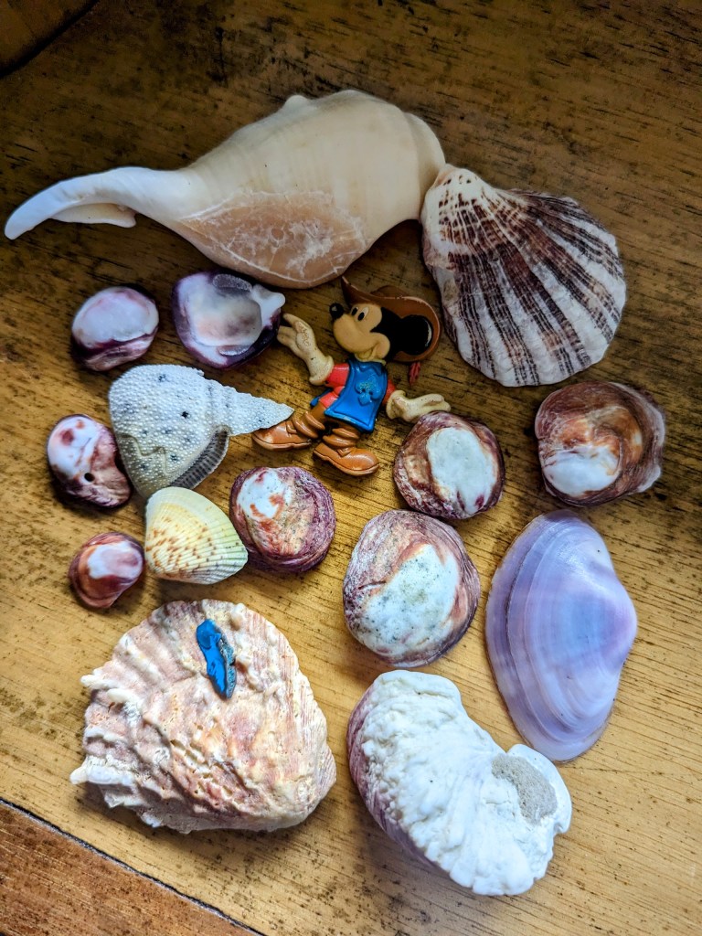 The last night in Port Barton, before packing, I looked at the colorful shells which I collected here. But not only shells. While snorkeling, I picked from the ocean floor a small Mickey Mouse figure. Who knows where he came from and for how long time was he swimming to Port Barton. But from now on, he will accompany me on the future trips.