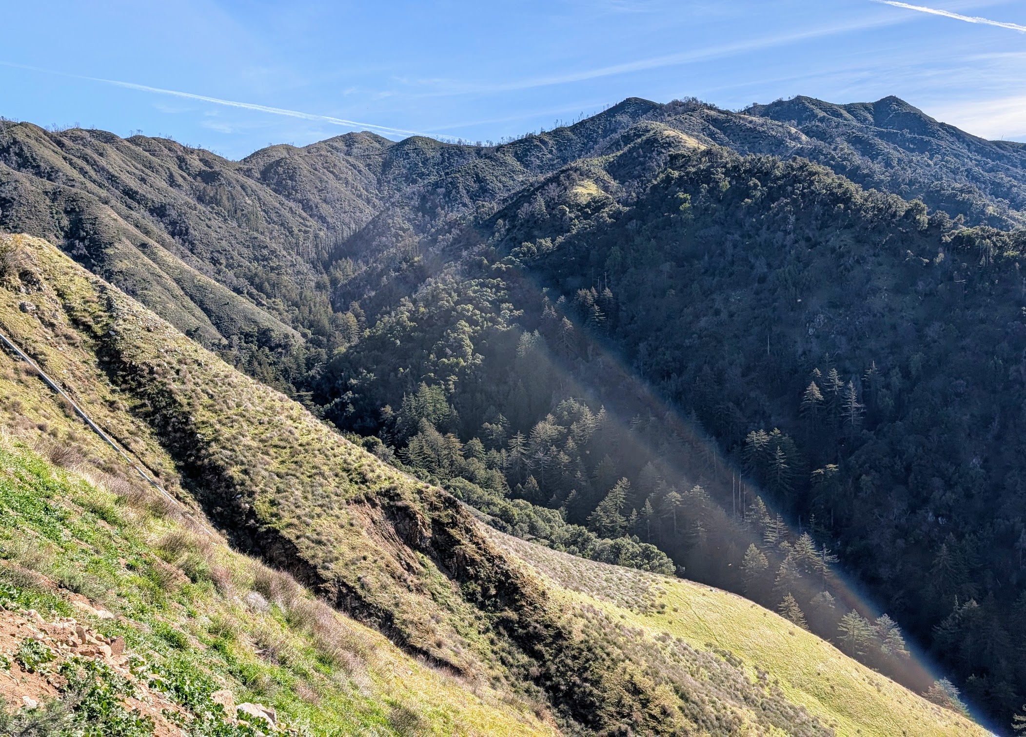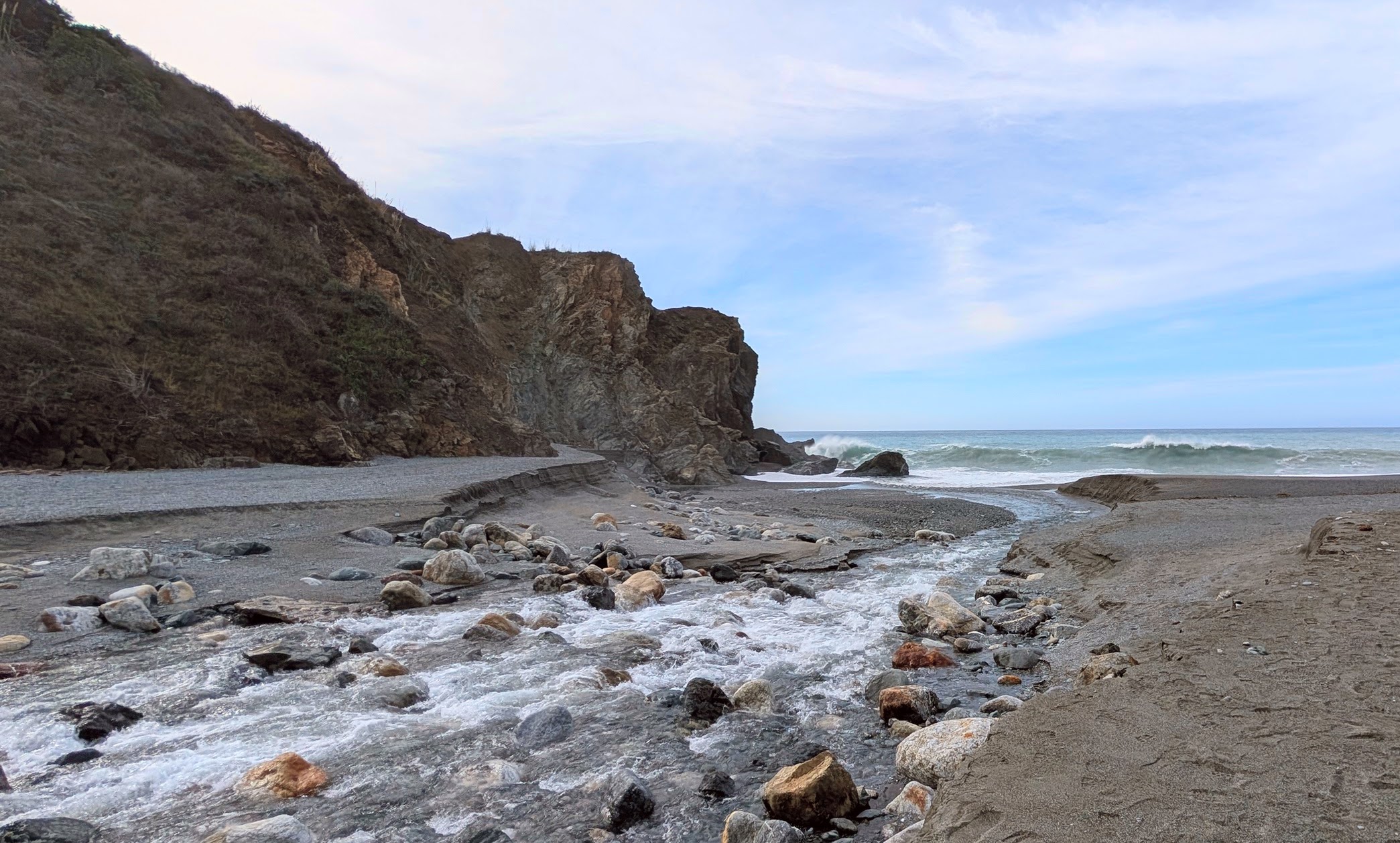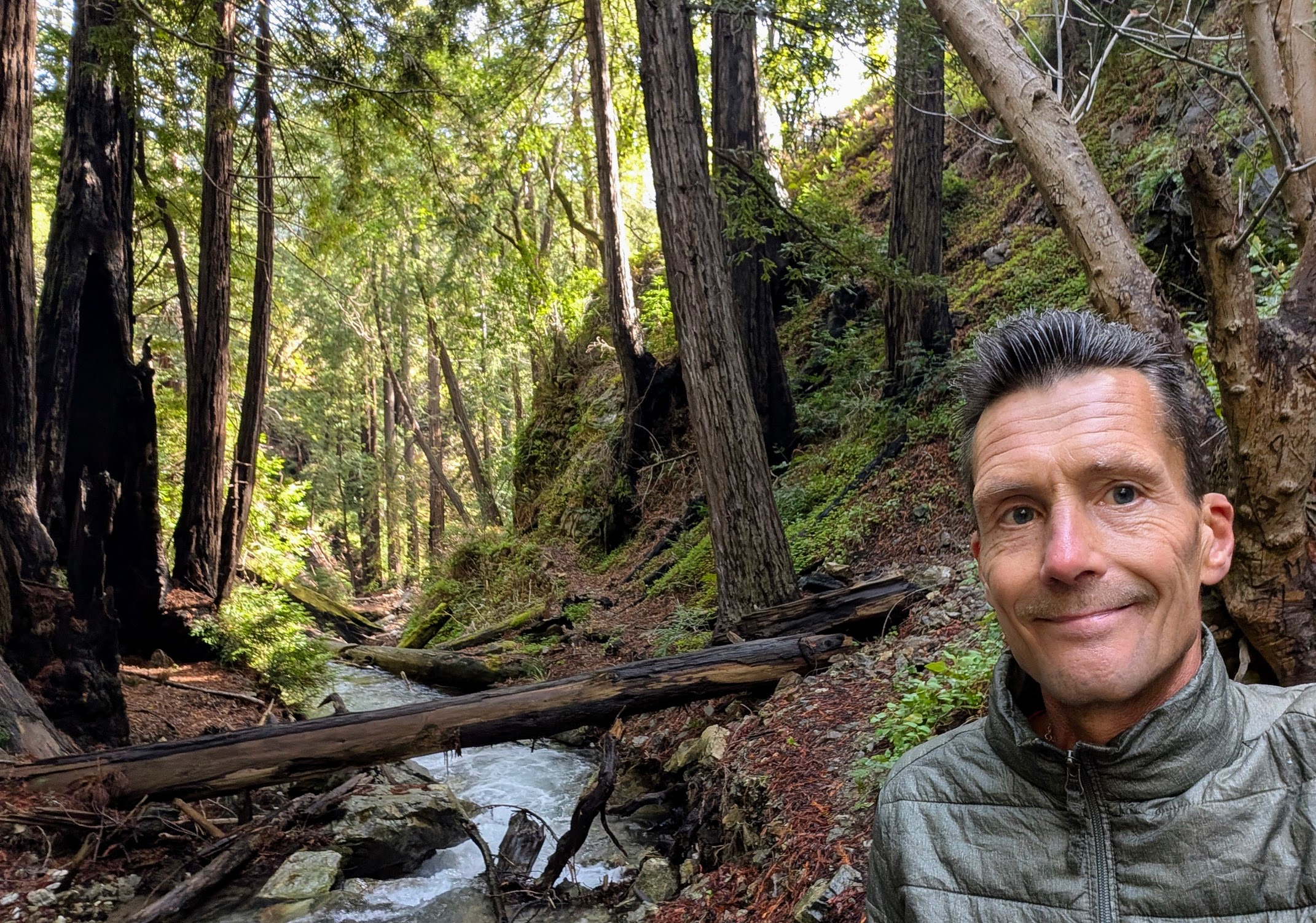 But then the trail disappeared (indeed, it was destroyed), and the rest of the hike could be described as “scrambling and falling.” Besides, I had to jump several times across the creek
