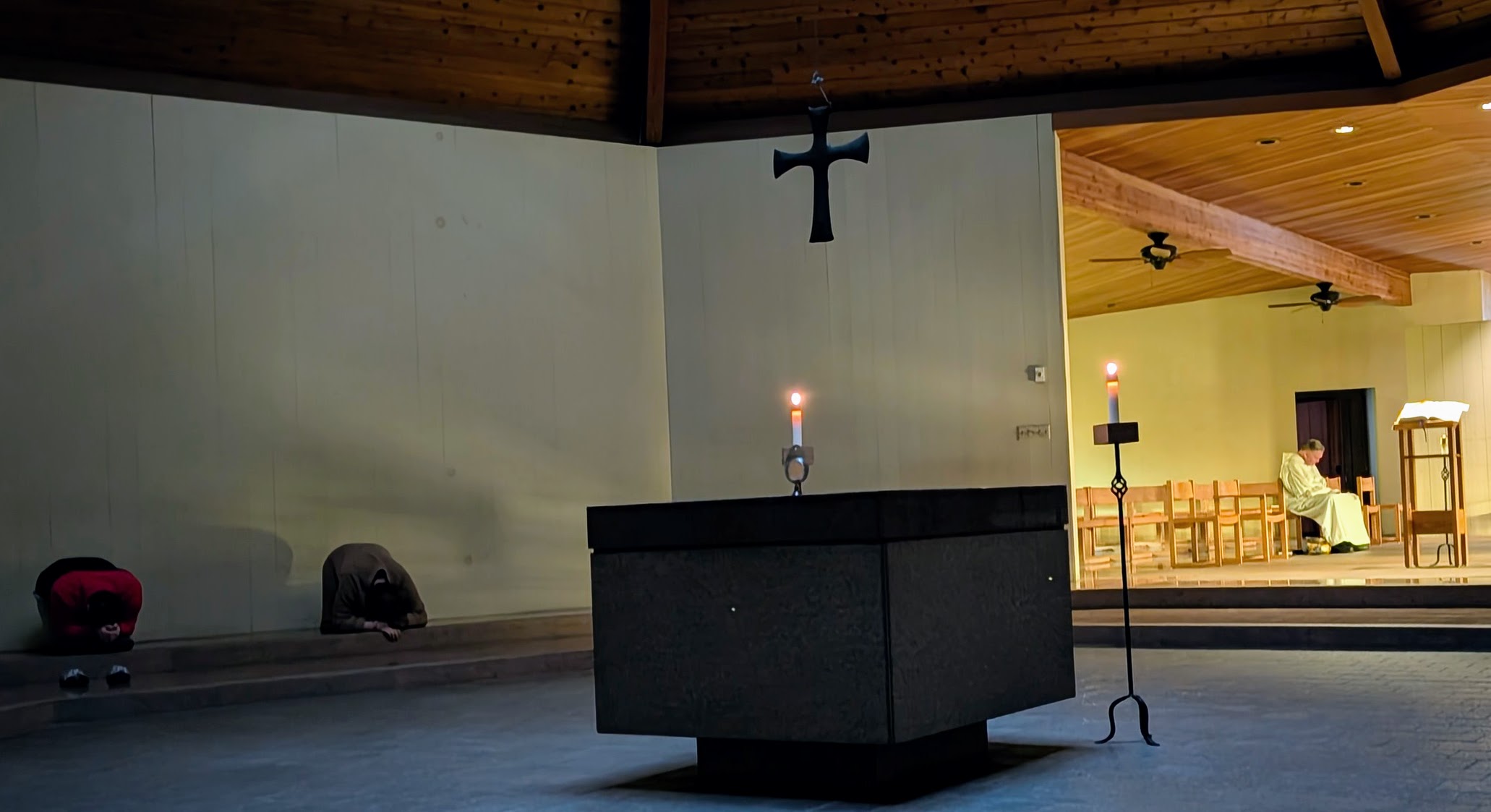 I returned to the church well in advance for Vespers. One of the monks was already there, sitting quietly in silent prayer or meditation.