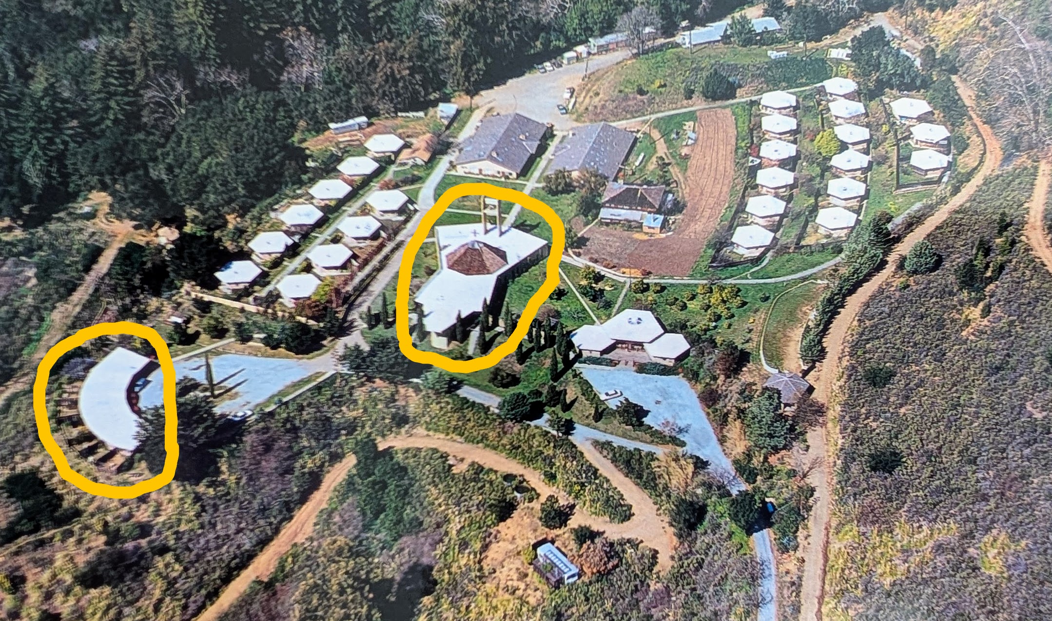 And here is New Camaldoli from the air. I circled with yellow paint retreat house for visitors and main church.