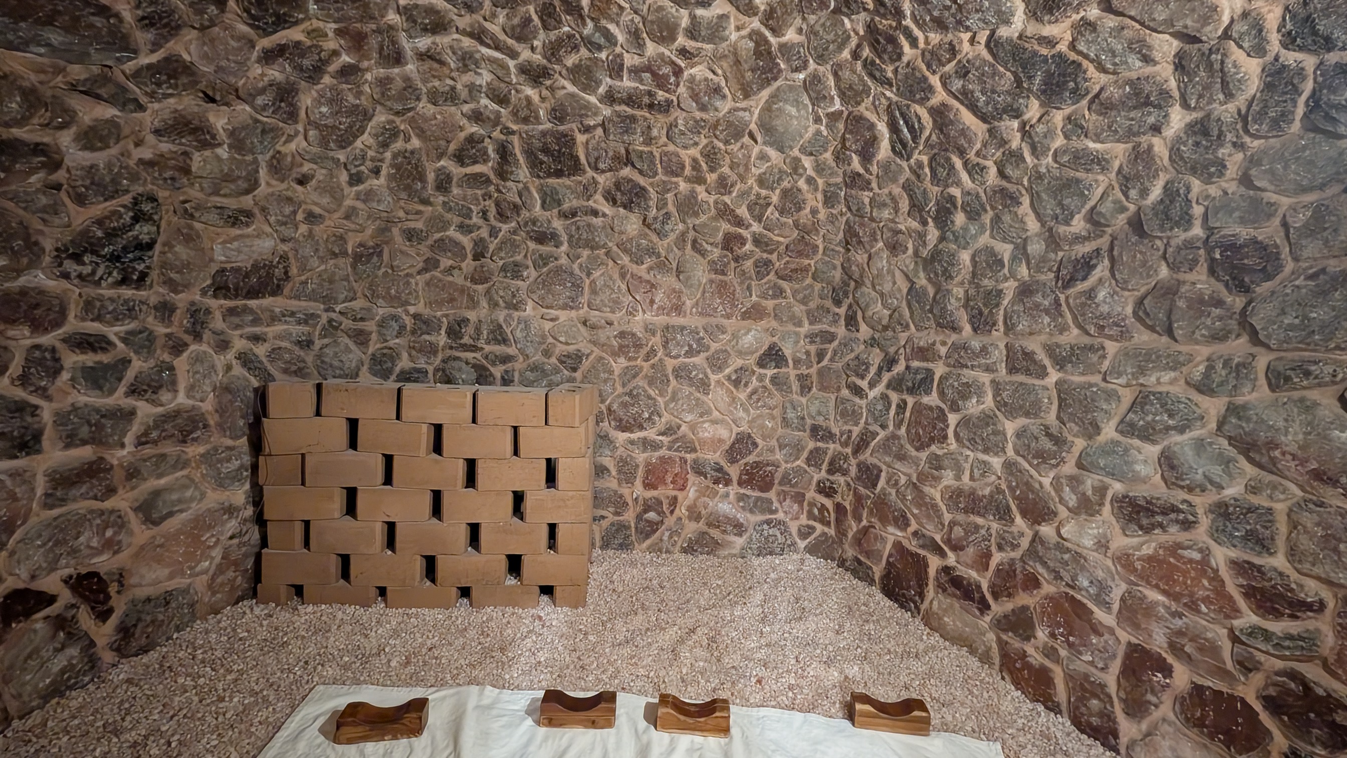 Inside the hot sauna, the round-shaped room with a cupola ceiling was surrounded by massive wooden “trunks” placed along the walls. In both the “relaxation” and “hot” saunas, patrons were expected to lie on the floor and use wooden headrests to make themselves more comfortable.
