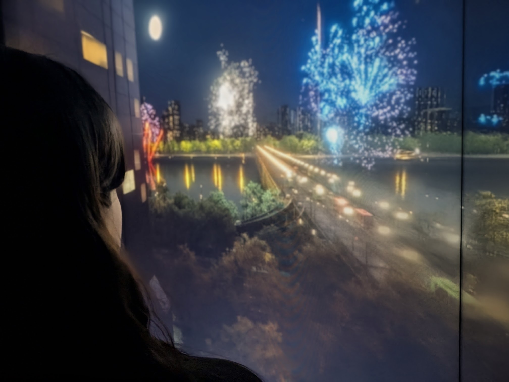 Second, during these 60 seconds, the elevator’s walls and ceilings turn into huge three-dimensional OLED screens showing breathtaking high-definition footage of Seoul.