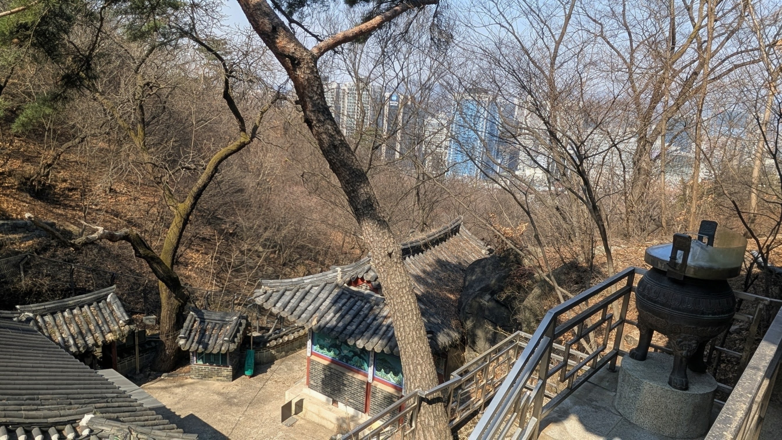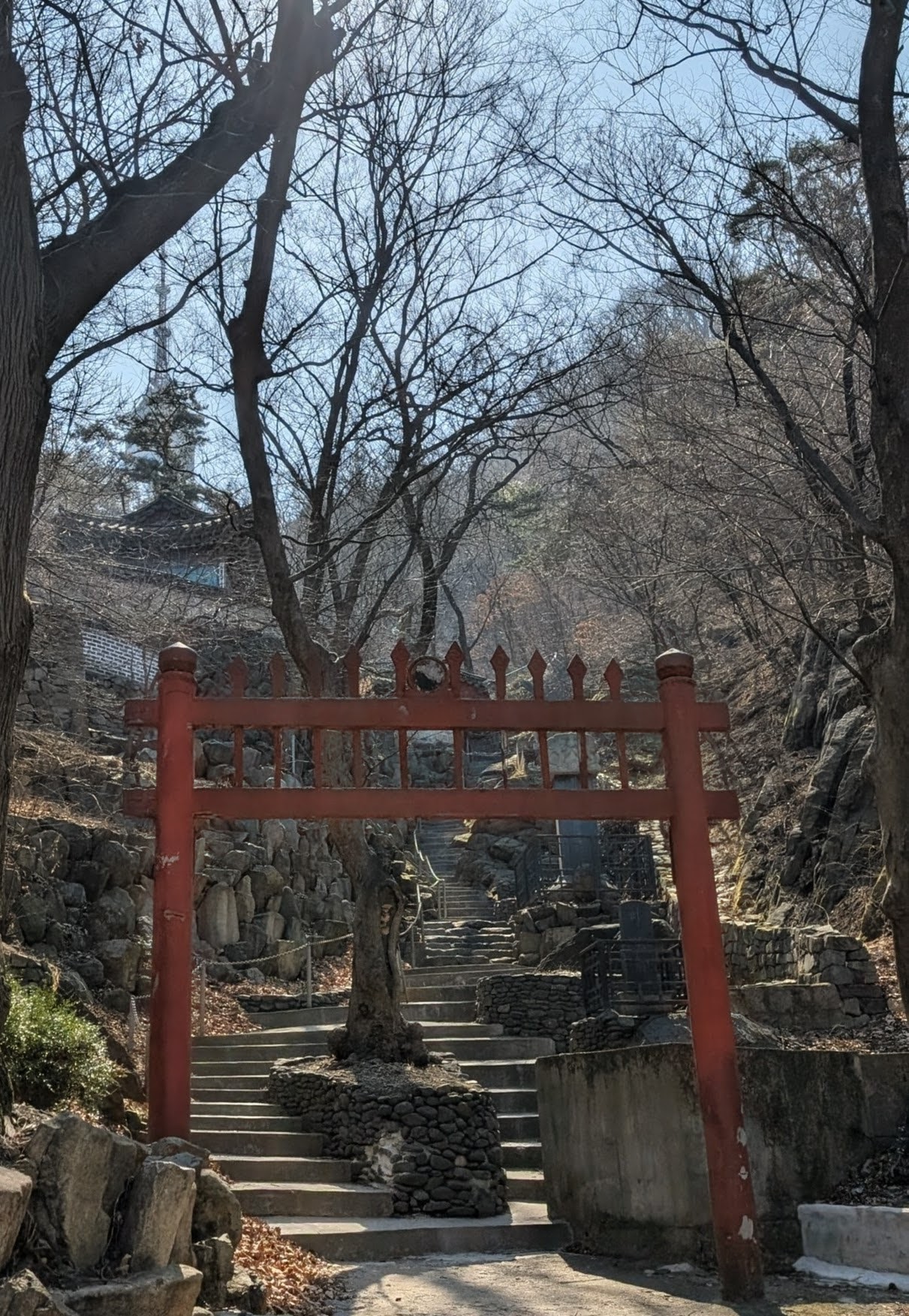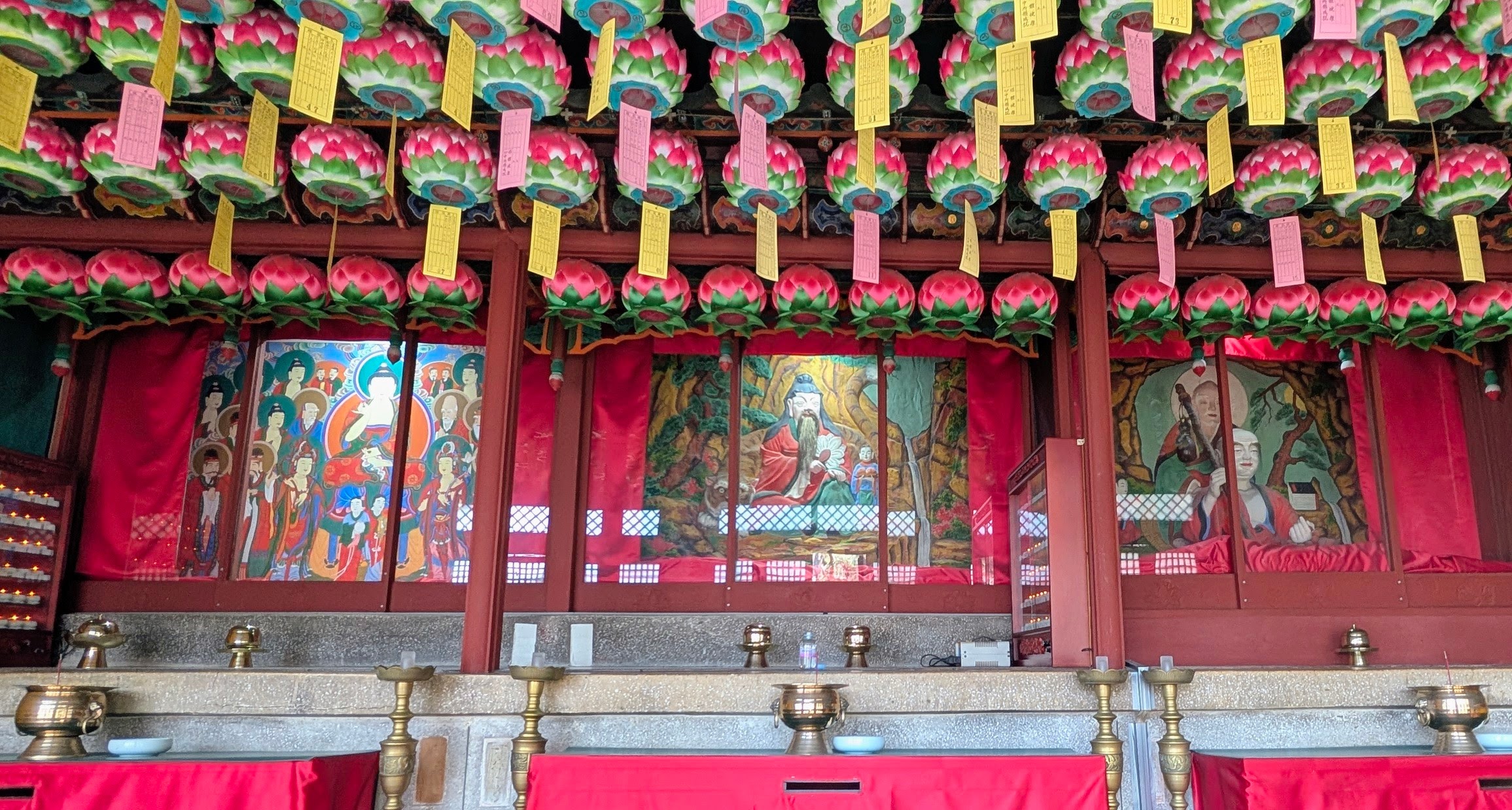 A small sign revealed that this is “Samseonggak Shrine,” which honors three Korean folk deities who are in charge of wealth (Mountain Spirit), longevity (Seven Stars), and fortune (Hermit Sage).
