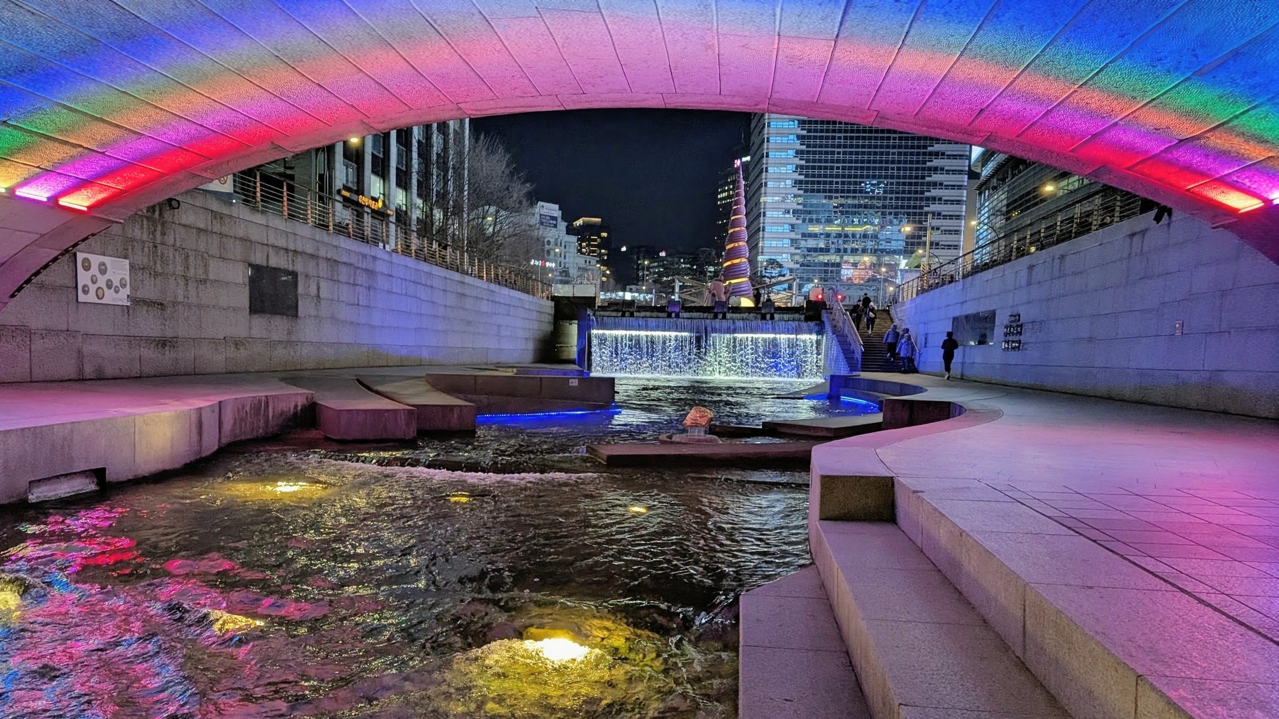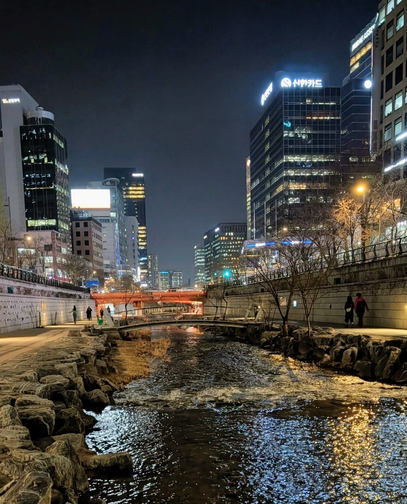 Cheonggyecheon, a stream and walkway through the downtown Seou