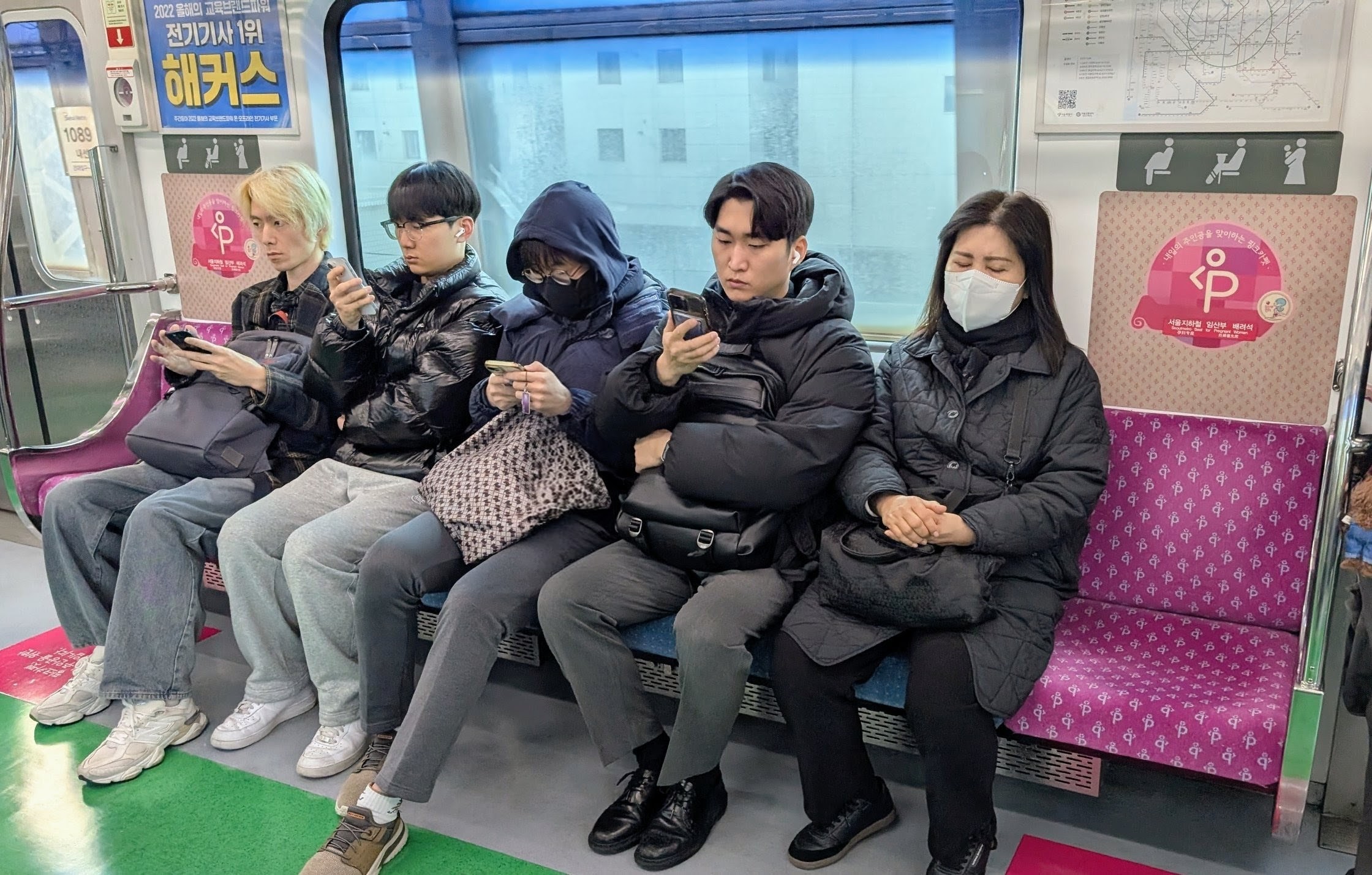 In Seoul subway, certain seats are reserved for pregnant women (pink on picture), elderly and disabled people