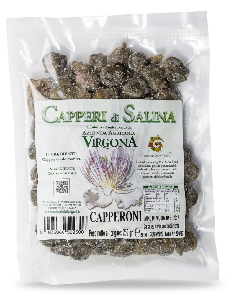 When people visit Aeolian islands and taste local capers, they are inevitably tempted to bring some of this “green gold” back home. The easiest way to do this, and not to worry about liquid rules on the plane, is to buy vacuum-sealed capers that are cured in sea-salt.