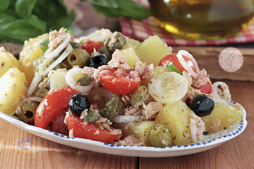 ​Insalata Eoliana (literally “Aeolian Salad”) is another local staple, especially popular during the hot summer months. It is a fragrant blend of boiled potatoes, cherry tomatoes, red onions, olives, capers, and chunks of locally caught tuna or swordfish – all seasoned generously with wild oregano.